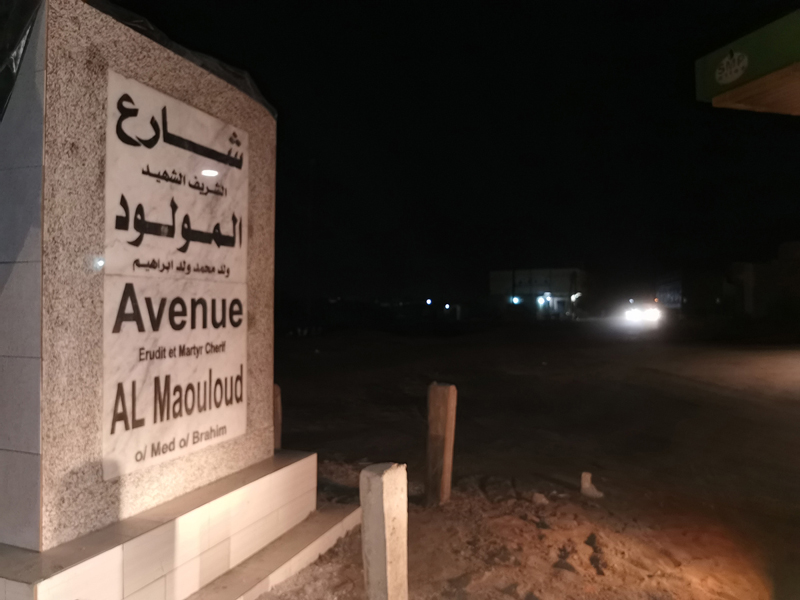 و تم قص الشريط الرمزى للشارع الذي يقع عند منعرج 18الى ملتقى ولدأبادو من طرف المستشار المكلف بالشؤون الاقتصادية السيد المين ولد جدو الوالى وكالة وبحضور ممثل وزير الثقافة والعلاقات مع البرلمان السيد النامى والد محمد كابر ولد صالحى المحافظ الوطنى للتراث والثقافة وذلك ايذانا بتبنى هذا الاسم .